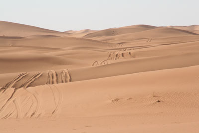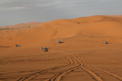 Entramos en el Erg Chebbi por la parte norte para atravesarlo por el centro y llegar al Oasis de Oubira