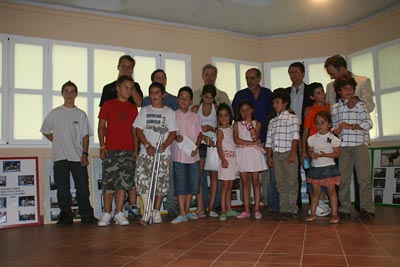 Para finalizar el acto de inauguración tomaron la palabra: el Tío Alberto (Ciudad Escuela de los Muchachos), Juan Carlos del Pozo (Aquarius), Santiago de la Rocha (Hyundai) y Nacho Salvador (Autoverde 4x4 y director del proyecto de El Desierto de los niños). Al final posaron con los niños que había allí.