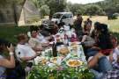 Disfrutamos de una buena comida en el campo, al mismo tiempo varios buitres revolotean por la zona, donde hay muchas buitreras.