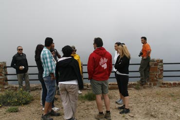 Hacemos parada en el mirador del Pico de la Hoya. En esta ocasión no podemos contemplar claramente el paisaje, debido a que está nublado y además hace algo de frío y caen una gotas de lluvia. Vamos pasando por diferentes valles hasta que nos dirigimos al puente los Machos y después al mirador del Chorro de los Ángeles, donde paramos para comer.