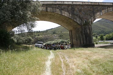 Acabamos la jornada con la comida, cerca del complejo de Riomalo, debajo de un puente, para protejernos del sol