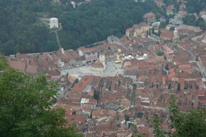 Salimos del castillo y nuestro próximo destino será la ciudad de Brasov, donde tenemos tiempo libre para visitar su casco histórico. Esta vez sin nuestra eterna acompañante la lluvia, ya que luce un sol espléndido. El casco histórico es bastante pequeño, en el que sobresale la iglesia llamada “negra” debido al incendió que sufrió a finales del siglo XVII, además de la plaza Sfatului, lugar en el que convergen una serie de calles comerciales, todas ellas peatonales que, a esta hora de la mañana, están muy transitadas.