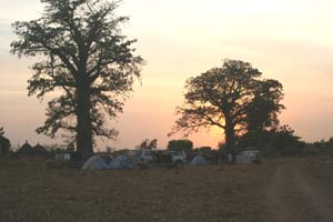 Llegamos a Rosso ya de noche, y el paso del barco estaba cerrado. Nos fuimos por el puente y, tras los 80 km de pista, llegamos a la frontera, que pasamos sin problemas alguno ... en época del Dakar todo es mucho más fácil!! Al final acabamos durmiendo en un hotel de St. Louis, en Senagal, después de haber hecho 515 km de pista y 120 de asfalto ... lo más parecido a una etapa del Dakar!!! Desde St. Louis nos pusimos en marcha hasta Tambacounda, donde estaría el campamento de la etapa del Dakar. Una vez en el campamento, podíamos notar que ya iban quedando pocos efectivos en el rally. Allí vimos a Nacho Salvador, después del accidente y de su paso por el hospital de Labé, con todos los huesos doloridos, pero con su buen ánimo de siempre.