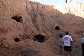 - 7-10-06: A los pocos km de Matmata nos metemos hacia un pueblo con casas trogloditas, excavadas en la tierra.