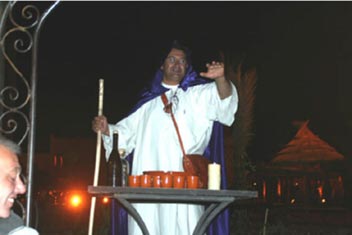 - Me llama Gonzalo: (Meteorito, compra unas pelucas de colores en los chinos), la chilaba egipcia, la marroquí, los turbantes y la túnica de Druiman, que nos venia a visitar, (si es que tienes más tonterías que el armario de un indio) me dice Dani (Xapapote).