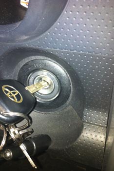 Tras cargar el coche, colocar los soportes del GPS y revisar 3 veces la lista de cosas salimos. Comimos por el camino y sobre las 19:30 hicimos otra parada para tomar un café. Esto no tiene nada de particular pero sí el hecho de que al volver a arrancar, la llave entró cruzada y se atascó. Os podéis imaginar el susto! No se podía mover y no entraba ni salía. El volante se movía pero no queríamos forzarlo por si se quedaba bloqueado. Entonces se me ocurrió poner un SOS en el grupo que tenemos de whatsApp para ver si a alguno le había pasado y si nos podían ayudar. Colgué la foto de la llave y la del volante: