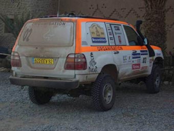 El viaje empezó el día 27 en Algeciras, donde conocí a los compañeros de viaje. Hay de todo (Nissan, Korando, Mitsubishi, más Toyotas, y hasta un Porsche, en fín, veremos qué viaje me dan). Me pusieron un dorsal (5) que no me gustó mucho por eso de las rimas, pero… Crucé el estrecho (según lo llamaban los humanos, aunque para mí estrechos son los caminos que a veces me hacen atravesar) metido en la panza de un barco. Allí me aparcaron y estuve quieto sobre 45 minutos. Una vez desembarcado, a la frontera y, pasada ésta, a Fnideq a dormir…. a la intemperie.